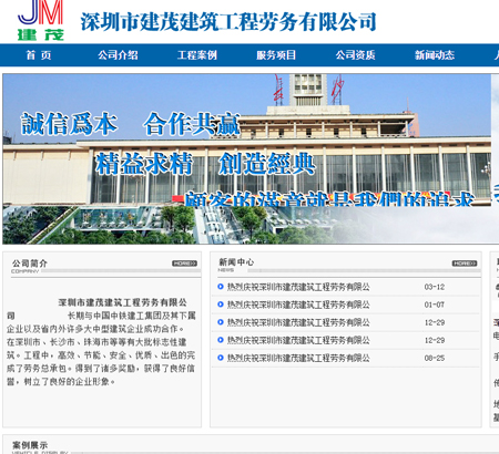 網站建設公司,做網站優化關鍵詞排名SEO,營銷型,手機網站建設,響應式,品牌型,電商/門戶,外貿型網站建設. 深圳市建茂建筑勞務有限公司長期與中鐵集團及其下屬企業以及省內外許多大中型建筑企業成功合作。在深圳市、長沙市、珠海市等等有大批標志性建筑。工程中,高效、節能、安全、優質、出色的完成了勞務總承包。得到了諸多獎勵,獲得了良好信譽,樹立了良好的企業形象。