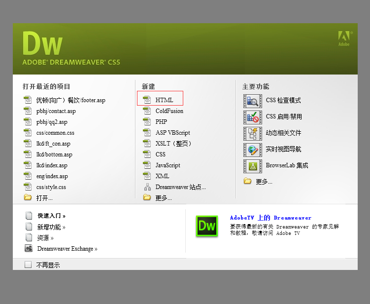 css文件夾是放后綴名為.css的文件,images文件夾是放網站所有用到的圖片,js文件夾是放所有網站用到的后綴名為.js的文件 dw怎么新建站點? 首先,我們打開DW軟件,出現如下窗口,我們點擊“新建-HTML